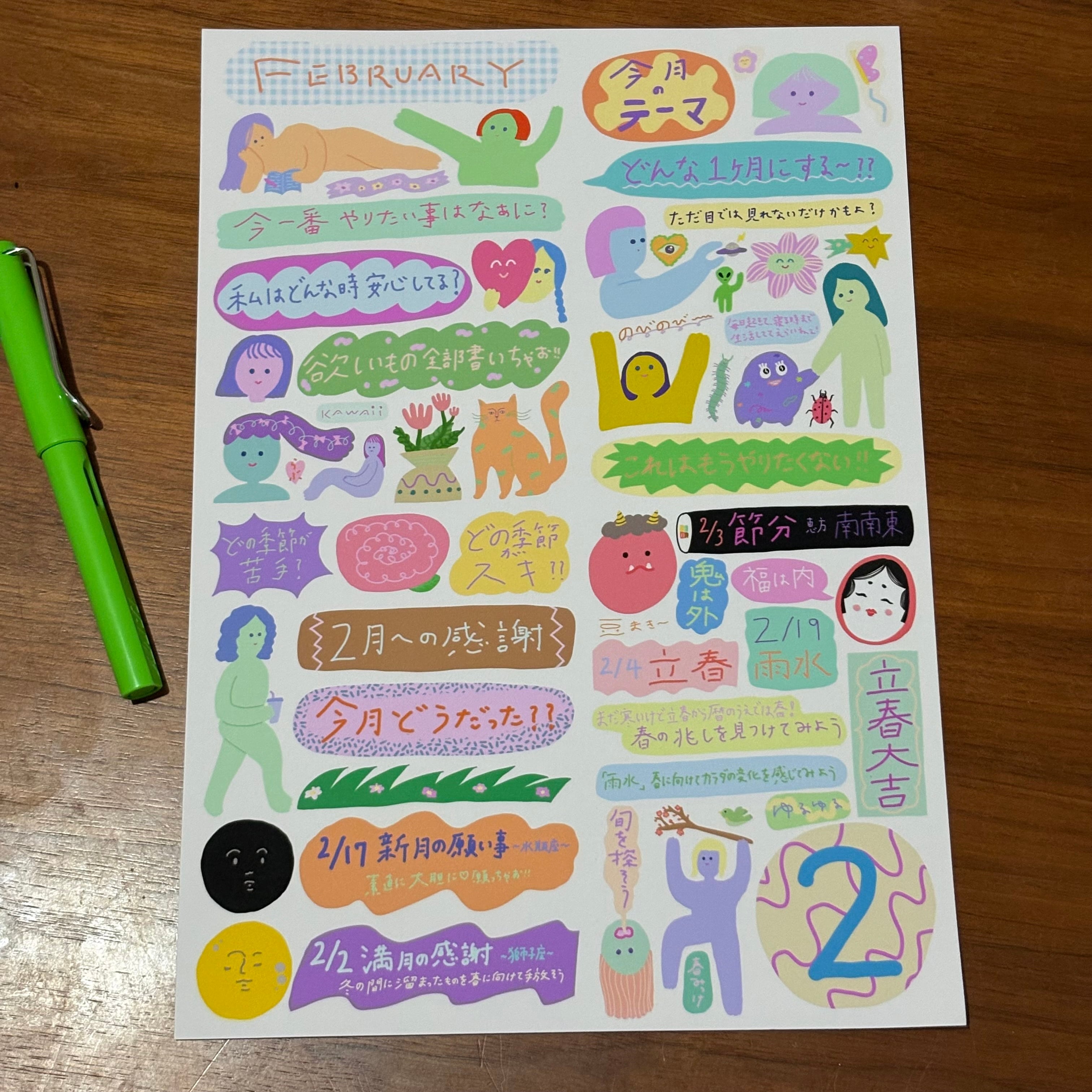 2月も自分との会話を楽しめるように女の子のイラストと色々な問いを描きました♡