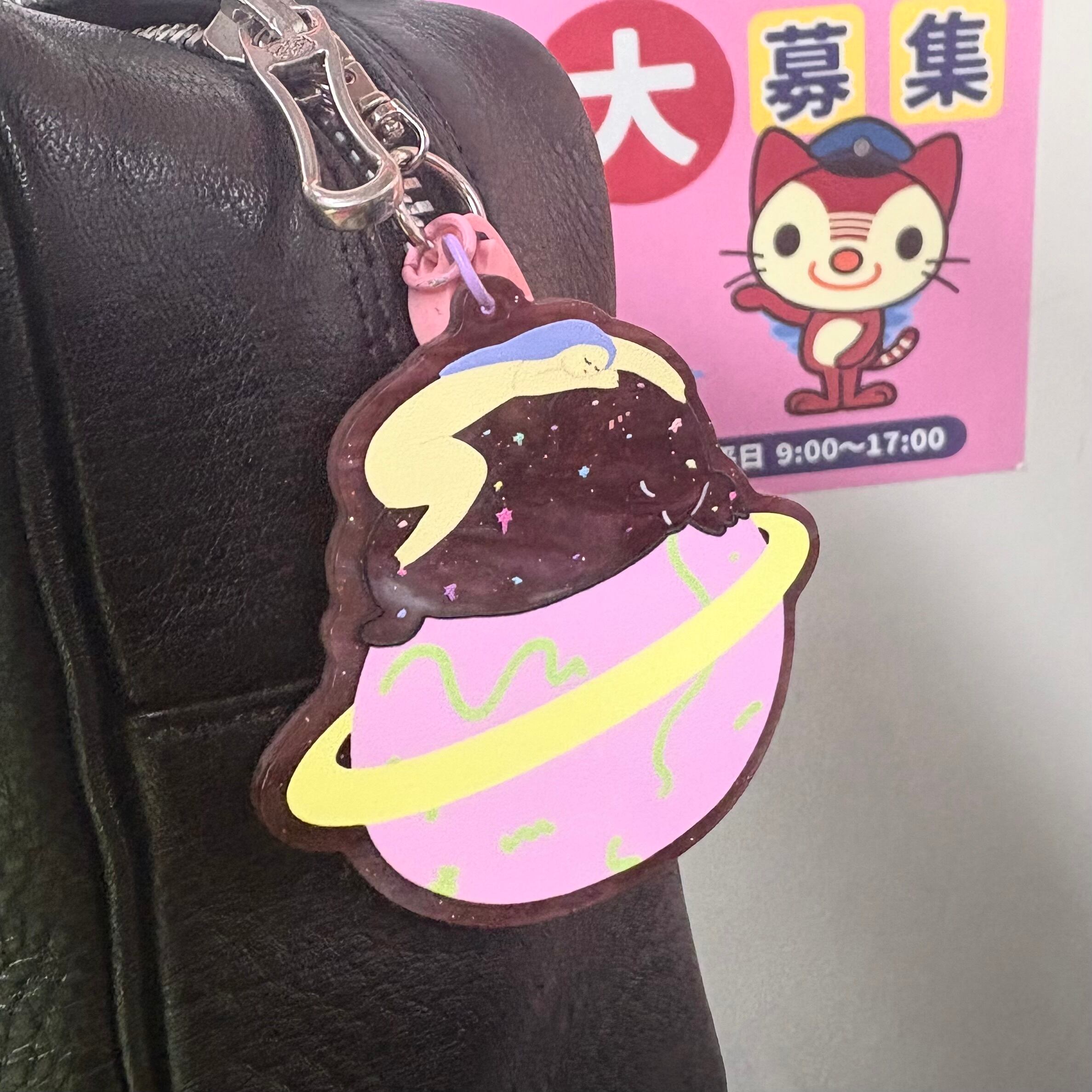 眠ったら、宇宙と繋がって充電して パワーをチャージしている♡ 約横6.5✖️縦6cm 宇宙みたいなマーブルストーンのアクリル板にプリントされたアクリルキーホルダーです。