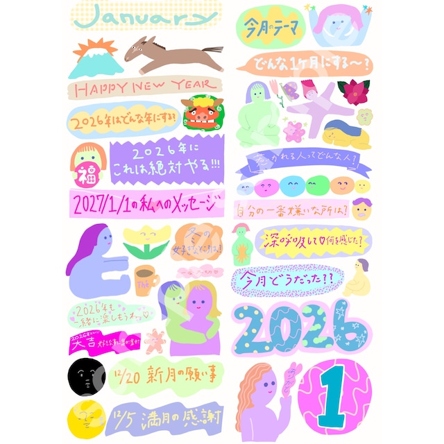 【 2026/1月用♡ノートを書くのがもっと楽しくなるシート♡】